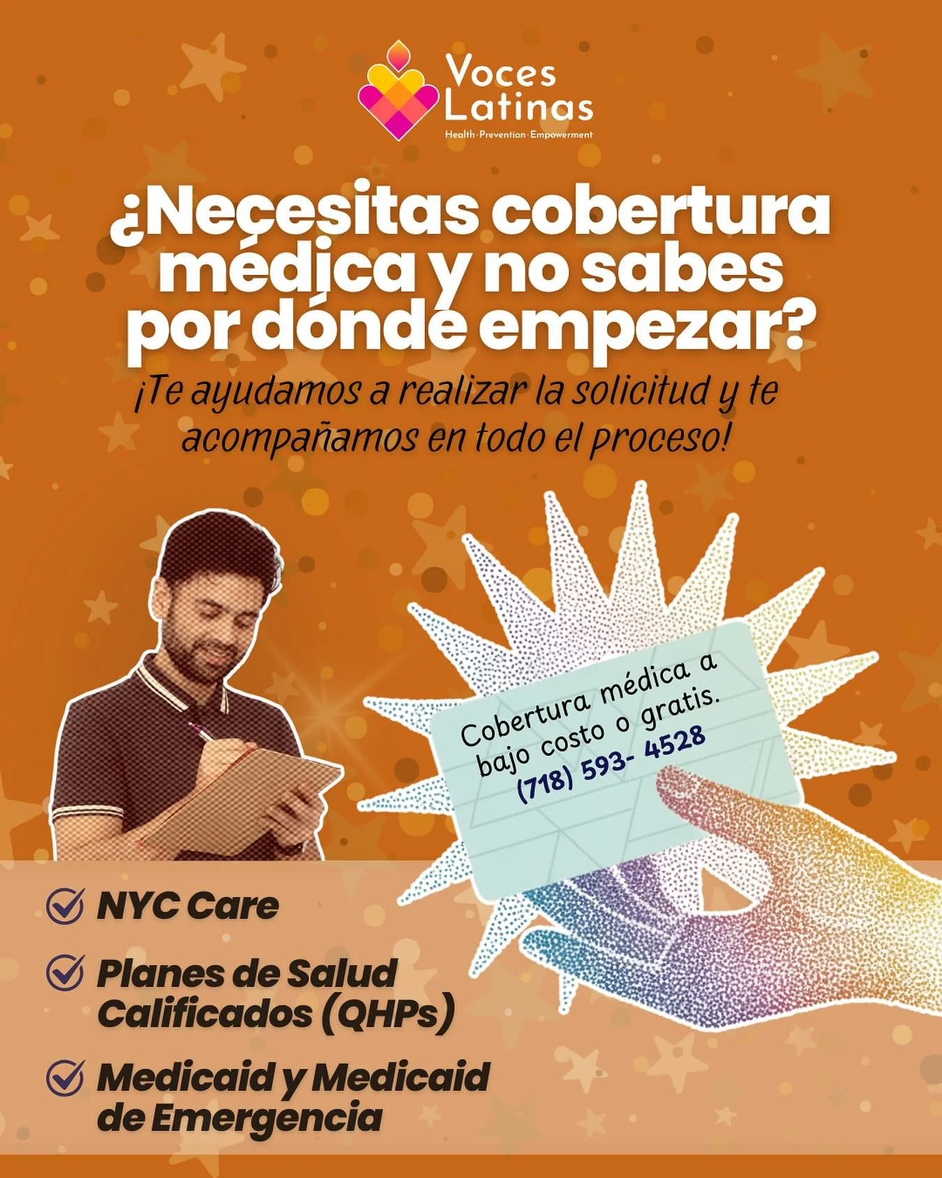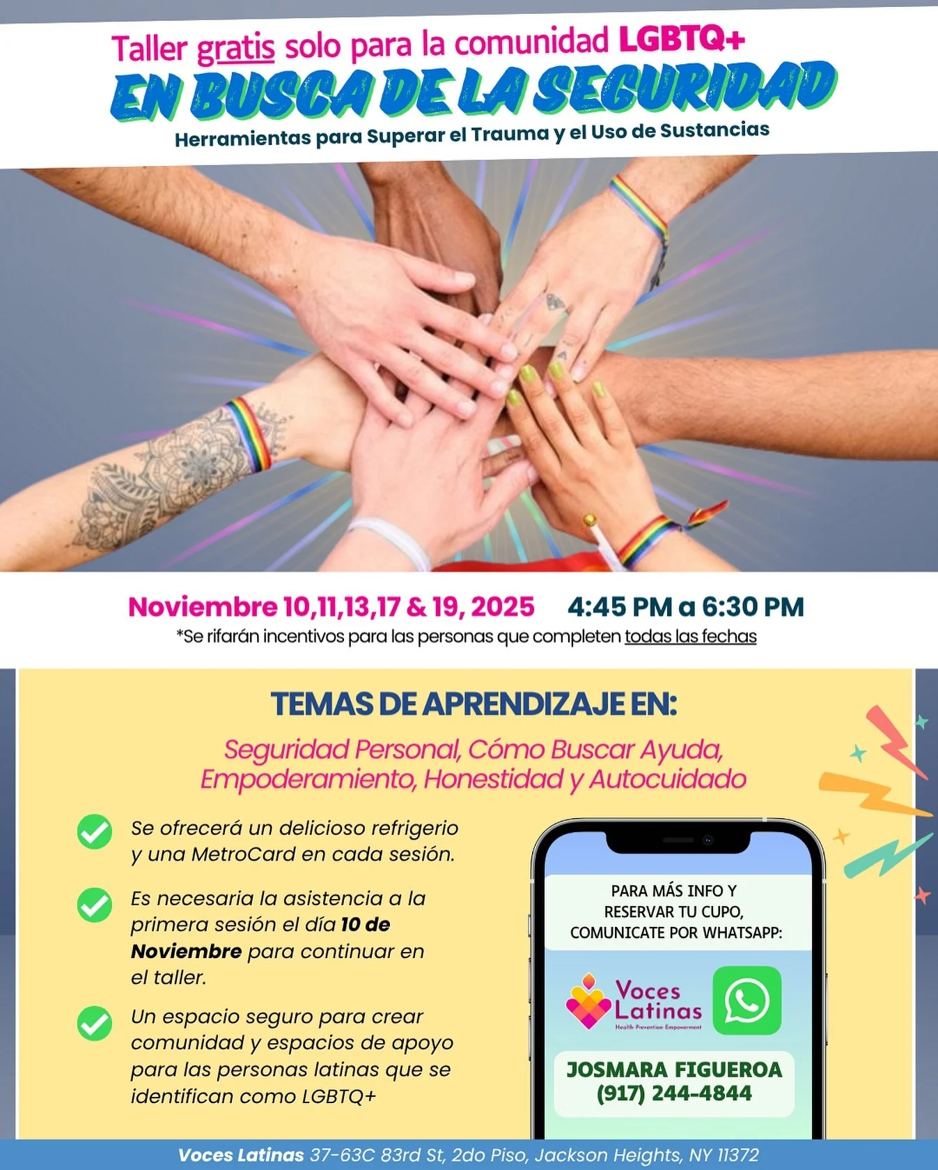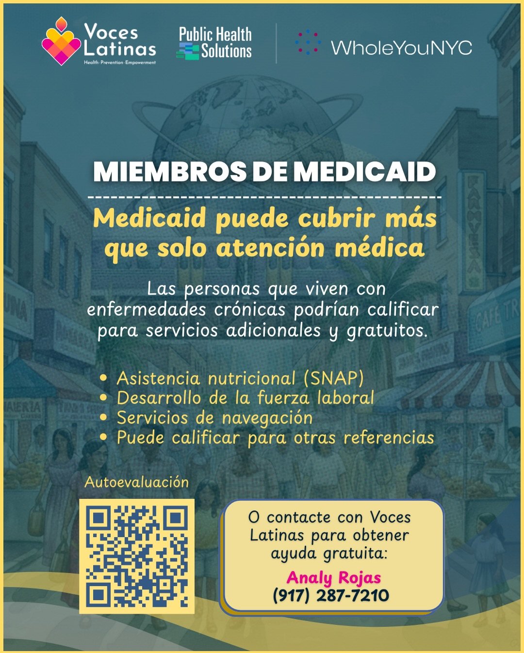 ¡Bienvenidos a Voces Latinas! Durante 22 años, hemos sido una parte fundamental de Queens, difundiendo la luz de la esperanza y defendiendo el bienestar de nuestra comunidad. Creemos que cuidar a nuestros vecinos significa mantener seguras a nuestras comunidades. A través de programas culturalmente sensibles en salud, prevención y empoderamiento, nos solidarizamos con inmigrantes y familias latinas, garantizando el acceso a recursos vitales y apoyo. Explora nuestro sitio para conocer más sobre nuestros servicios y descubrir cómo podemos trabajar juntos por un futuro más fuerte y saludable.