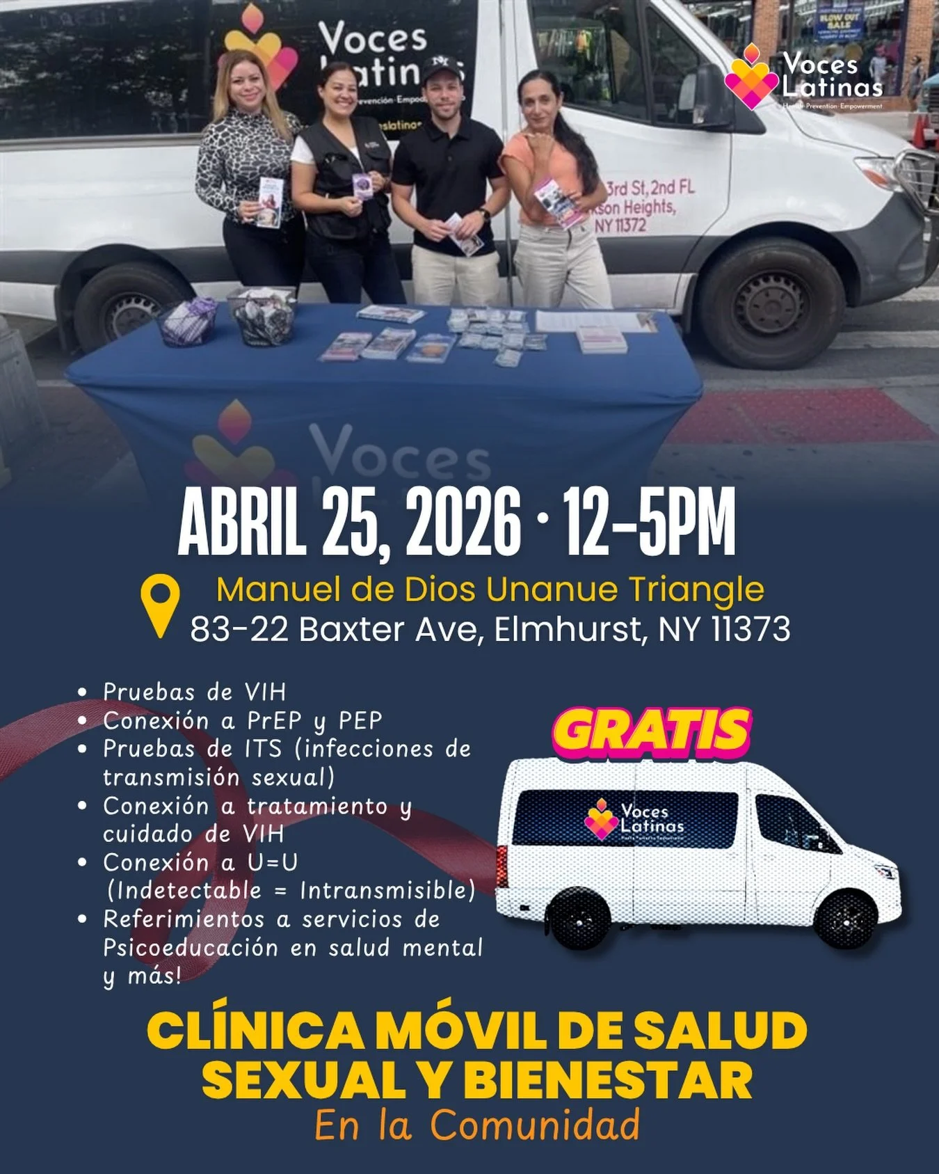 Our mobile van unit travels the borough to meet our clients where they live and where they normally transit. We load up the van with free condom packets, disinfectant gels, organization literature, keepsakes, etc. Here you will find our Promotoras leading important conversations about sexual health, community and wellness.