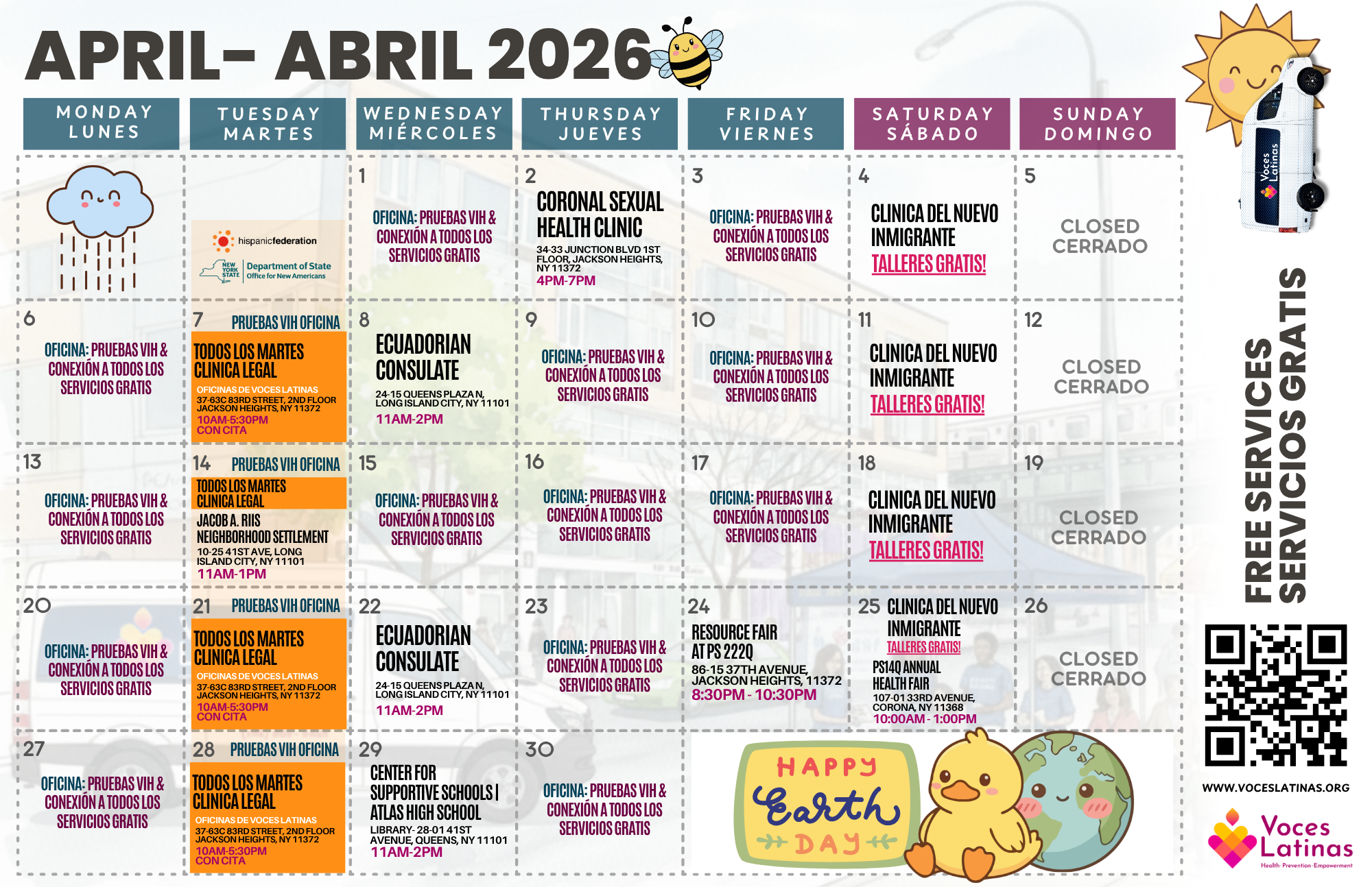 Estamos en Queens! Conéctate con Voces Latinas en estos eventos comunitarios.