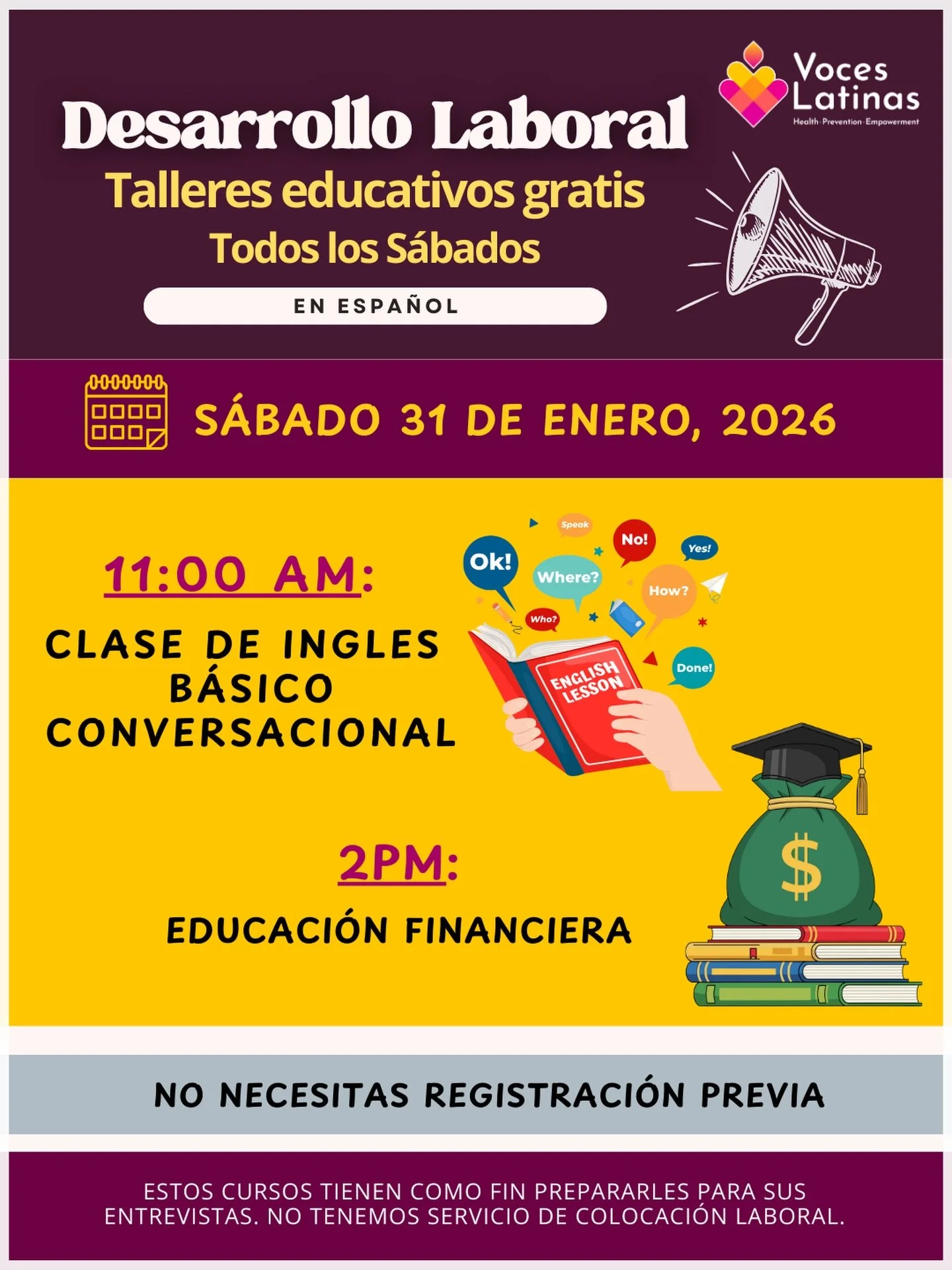El programa de Desarrollo Laboral de Voces Latinas adopta un enfoque centrado en la persona para equipar a los nuevos inmigrantes con las habilidades necesarias para alcanzar el éxito a largo plazo. Nuestros talleres educan a los participantes sobre cómo funciona la fuerza laboral en los Estados Unidos y ofrecen capacitaciones de preparación laboral, ayudando a los migrantes a adquirir los conocimientos necesarios para obtener empleo y comprender sus derechos. Nuestro programa empodera a los inmigrantes con un plan de servicio personalizado y los conecta con servicios comunitarios que apoyan su camino.